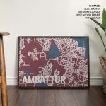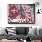 Wall Decor | Red poster map of ambattur | Custom Size & Frame • Ready to Hang • Made in India • Eco-Friendly