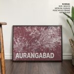 Wall Decor | Red poster map of aurangabad | Custom Size & Frame • Ready to Hang • Made in India • Eco-Friendly