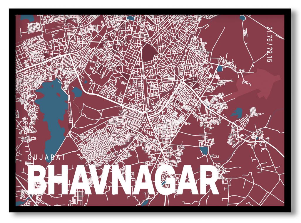 Wall Art | Red poster map of bhavnagar | Small to XXXL Sizes • 50+ Framing Styles • Non Toxic