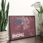 Wall Art | Red poster map of bhopal | Small to XXXL Sizes • 50+ Framing Styles • Non Toxic