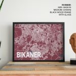 Wall Art | Red poster map of bikaner | Small to XXXL Sizes • 50+ Framing Styles • Non Toxic