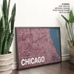 Framed Art | Red poster map of chicago | 50+ Frame Styles • Museum Quality • Made in India