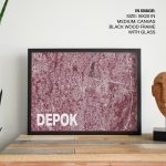 Wall Decor | Red poster map of depok | Custom Size & Frame • Ready to Hang • Made in India • Eco-Friendly