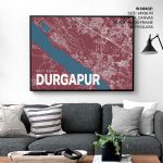 Framed Art | Red poster map of durgapur | 50+ Frame Styles • Museum Quality • Made in India