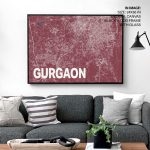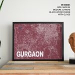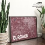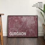 Wall Decor | Red poster map of gurgaon | Custom Size & Frame • Ready to Hang • Made in India • Eco-Friendly