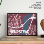 Framed Art | Red poster map of hempstead | 50+ Frame Styles • Museum Quality • Made in India