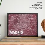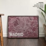 Wall Decor | Red poster map of madrid | Custom Size & Frame • Ready to Hang • Made in India • Eco-Friendly