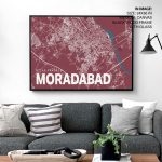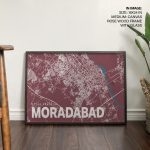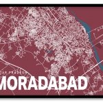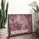 Framed Art | Red poster map of moradabad | 50+ Frame Styles • Museum Quality • Made in India