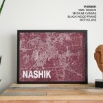 Framed Art | Red poster map of nashik | 50+ Frame Styles • Museum Quality • Made in India