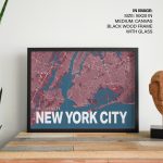 Red poster map of new york city - Wall Art, Hanging Wall Decor, Home Decor - BestOfBharat