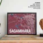 Framed Art | Red poster map of sagamihara | 50+ Frame Styles • Museum Quality • Made in India
