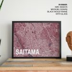 Wall Decor | Red poster map of saitama | Custom Size & Frame • Ready to Hang • Made in India • Eco-Friendly