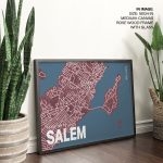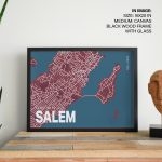 Framed Art | Red poster map of salem | 50+ Frame Styles • Museum Quality • Made in India