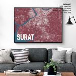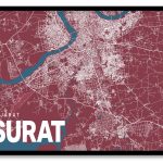 Red poster map of surat