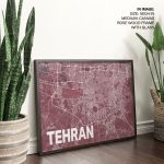 Framed Art | Red poster map of tehran | 50+ Frame Styles • Museum Quality • Made in India