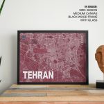 Framed Art | Red poster map of tehran | 50+ Frame Styles • Museum Quality • Made in India