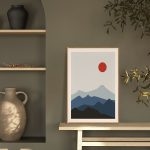 Wall Decor | Red Sun and Mountains with Blue Shades | Custom Size & Frame • Ready to Hang • Made in India • Eco-Friendly