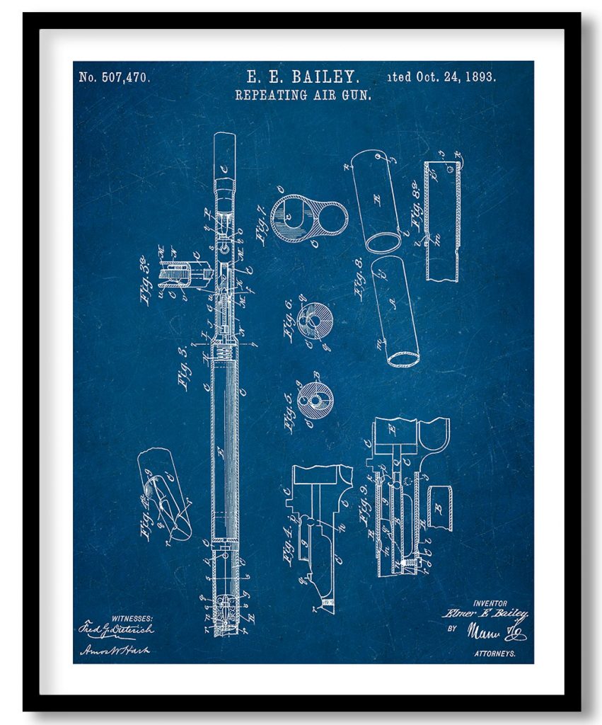 Wall Art | Repeating air gun 1893 blueprint | Small to XXXL Sizes • 50+ Framing Styles • Non Toxic