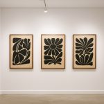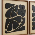 Minimal Botanical Harmony - A modern wall art set with bold floral silhouettes on woodgrain