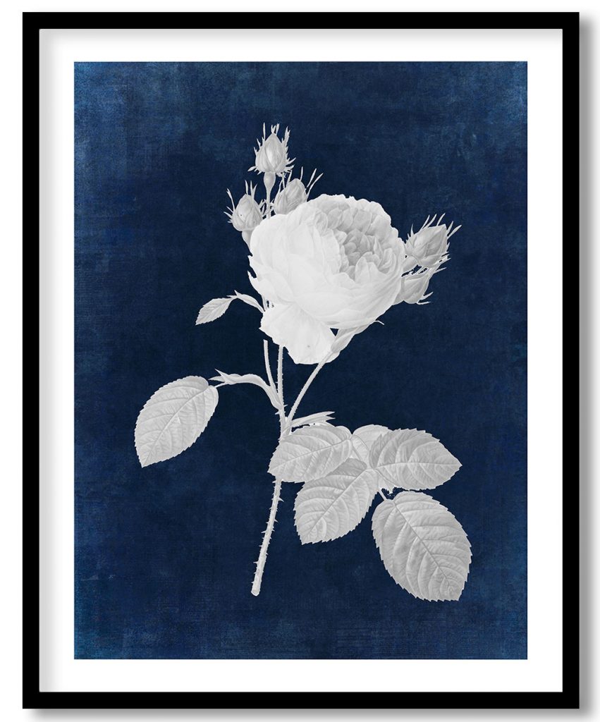 Wall Decor | Rosier a cent feuilles, from Les Roses - Indigo Pressed | Custom Size & Frame • Ready to Hang • Made in India • Eco-Friendly