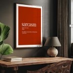 Framed Art | Sarcasm - Funny Dictionary Definition, Rust Red | 50+ Frame Styles • Museum Quality • Made in India