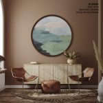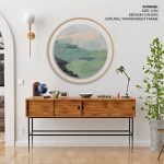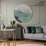Seafoam Green Mint Black Blush Pink Abstract Nature Land Wall Art, Framed Wall Art, Wave Painting Print, Modern Wall Art - Circular Wooden Frames - Wall Art, Hanging Wall Decor, Home Decor - BestOfBharat
