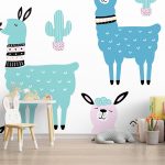 Seamless cute llama and cactus - Non Toxic Wall Paper Decor, Home & Office Decor - BestOfBharat