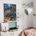 - Material: You can choose between different print mediums (Glicee paper or Canvas) and 40+ framing options that you can see on the website. Any order above 18x24 inches is processed in pinewood since synthetic wood is not able to bear its load. Wherever applicable, acrylic glass is used instead of normal glass, for its ease of handling and recyclability.