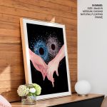 - Material: You can choose between different print mediums (Glicee paper or Canvas) and 40+ framing options that you can see on the website. Any order above 18x24 inches is processed in pinewood since synthetic wood is not able to bear its load. Wherever applicable, acrylic glass is used instead of normal glass, for its ease of handling and recyclability.