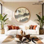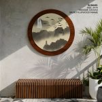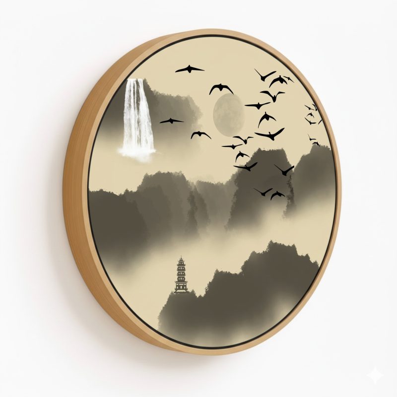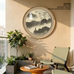 Wall Decor | Sepia japanese landscape - Circular Wooden Frame | Custom Size & Frame • Ready to Hang • Made in India • Eco-Friendly