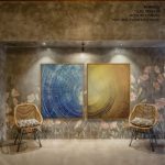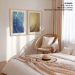 Set of 2 abstract blue and yellow circle - Wall Art Decor, Framed Painting, Home Decor - BestOfBharat