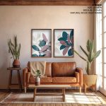 Wall Art | Set of 2 abstract blue pink leaves | Small to XXXL Sizes • 50+ Framing Styles • Non Toxic