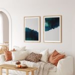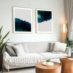 Wall Decor | Set of 2 abstract indigo watercolor mountain landscape | Custom Size & Frame • Ready to Hang • Made in India • Eco-Friendly