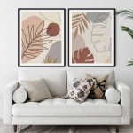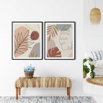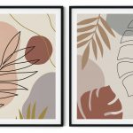 Set of 2 abstract leaves and monstera botanical - Wall Art, Hanging Wall Decor, Home Decor - BestOfBharat