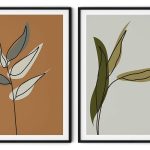 Set of 2 abstract line drawing botanical - Wall Art, Hanging Wall Decor, Home Decor - BestOfBharat