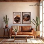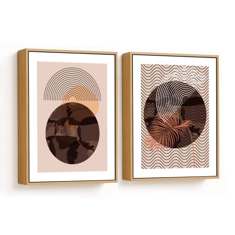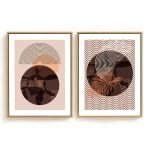 Framed Art | Set of 2 aesthetic boho mid century geometrical line drawing abstract | 50+ Frame Styles • Museum Quality • Made in India