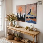 Wall Decor | Set of 2 alps sun mountain landscape | Custom Size & Frame • Ready to Hang • Made in India • Eco-Friendly