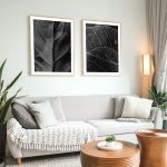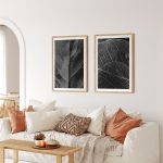 Framed Art | Set of 2 black burnt detailed leaves | 50+ Frame Styles • Museum Quality • Made in India