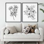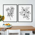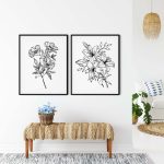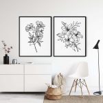 Wall Decor | Set of 2 black line drawing flowers | Custom Size & Frame • Ready to Hang • Made in India • Eco-Friendly