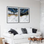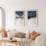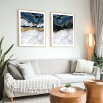 Set of 2 blue agate golden veins - Wall Art, Hanging Wall Decor, Home Decor - BestOfBharat