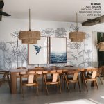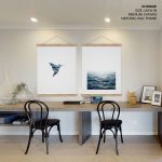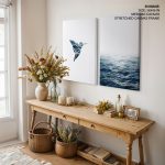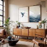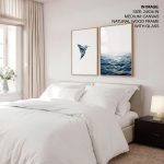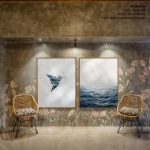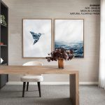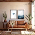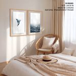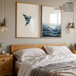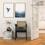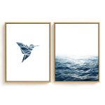 Wall Art | Set of 2 blue geometric bird and ocean | Small to XXXL Sizes • 50+ Framing Styles • Non Toxic
