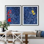 Set of 2 blue white line drawing boy and girl - Wall Art, Hanging Wall Decor, Home Decor - BestOfBharat