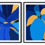 Wall Art | Set of 2 blue yellow abstract botanical | Small to XXXL Sizes • 50+ Framing Styles • Non Toxic