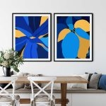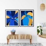 Wall Art | Set of 2 blue yellow abstract botanical | Small to XXXL Sizes • 50+ Framing Styles • Non Toxic
