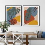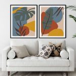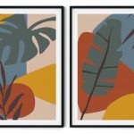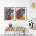 Set of 2 boho botanical abstract - Wall Art Decor, Framed Painting, Home Decor - BestOfBharat