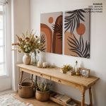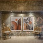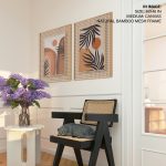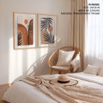 Set of 2 boho mountain sun botanical landscape - Wall Art Decor, Framed Painting, Home Decor - BestOfBharat