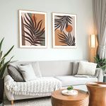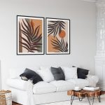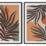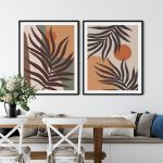 Set of 2 boho sun leaves botanical abstract - Wall Art, Hanging Wall Decor, Home Decor - BestOfBharat
