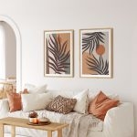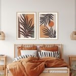 Framed Art | Set of 2 boho sun leaves botanical abstract | 50+ Frame Styles • Museum Quality • Made in India