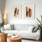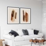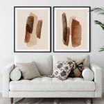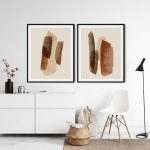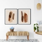 Wall Decor | Set of 2 brown minimalist brushstroke | Custom Size & Frame • Ready to Hang • Made in India • Eco-Friendly