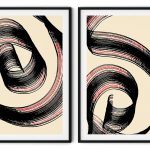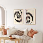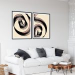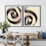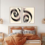 Wall Art | Set of 2 brushstroke curl line abstract | Small to XXXL Sizes • 50+ Framing Styles • Non Toxic